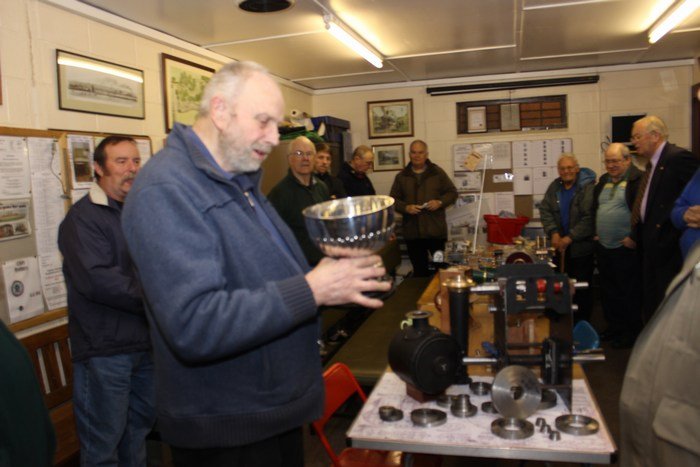 The 2014 Bits & Pieces Night was held on Tuesday April 8. The Bassett-Lowke Bowl was presented to Ray Sweeting for parts for his 6in. scale Savage "Little Samson" traction engine.