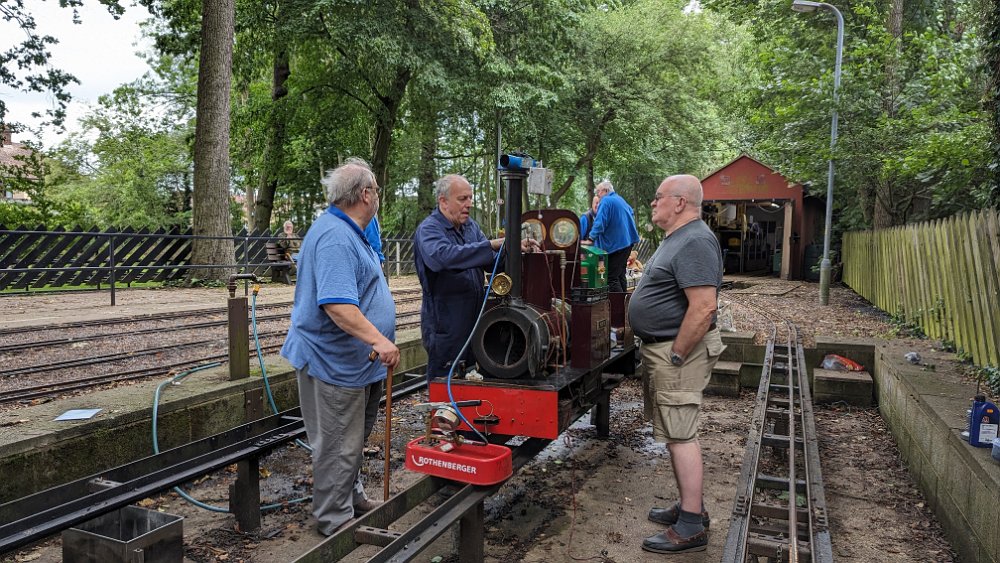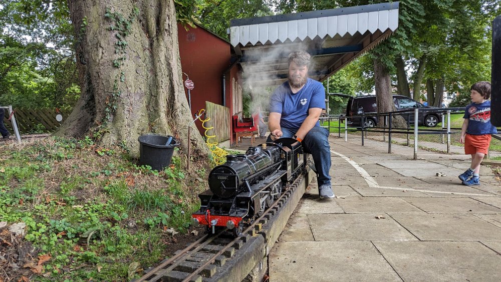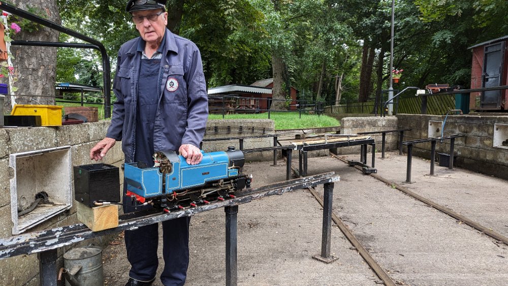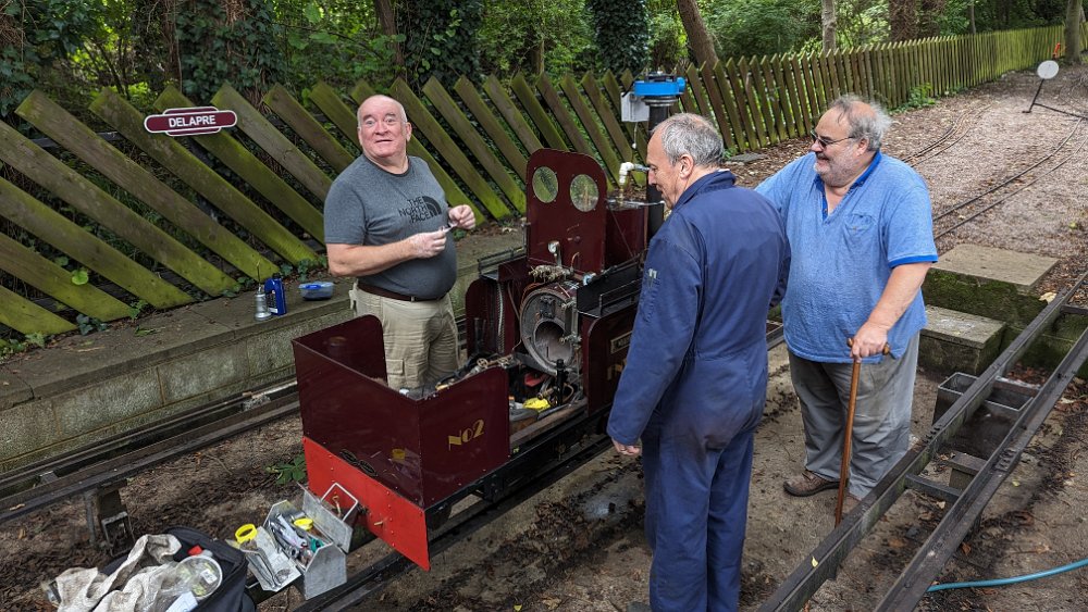 Nick prepares Wolfhound for a steam test Spencer watches as George sorts out a minor glitch. Nick (a younger one!!) gives Upnor Castle a run. For the first time in four years, George's railcar LMS 29951 took to the rails "under its own steam". Callum gets his Black Five into steam