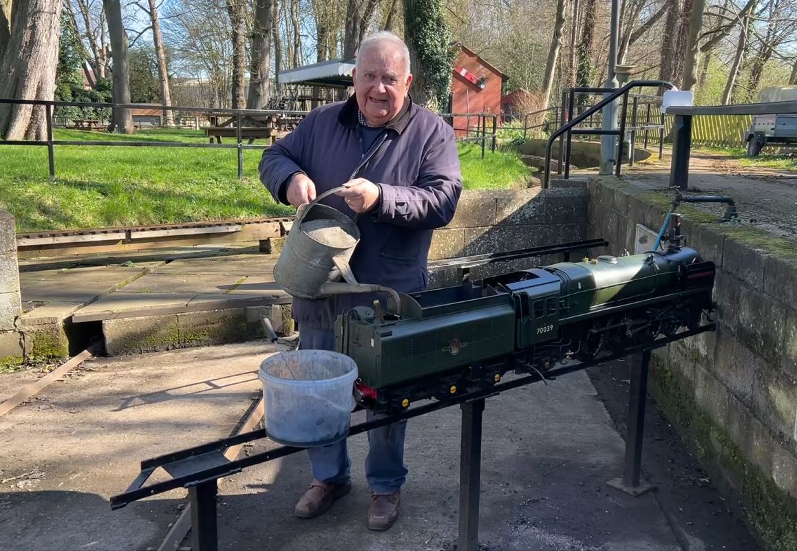 We have recieved tha sad new that Graham Titman has passed away. Here is Graham driving our loco Merlin. |